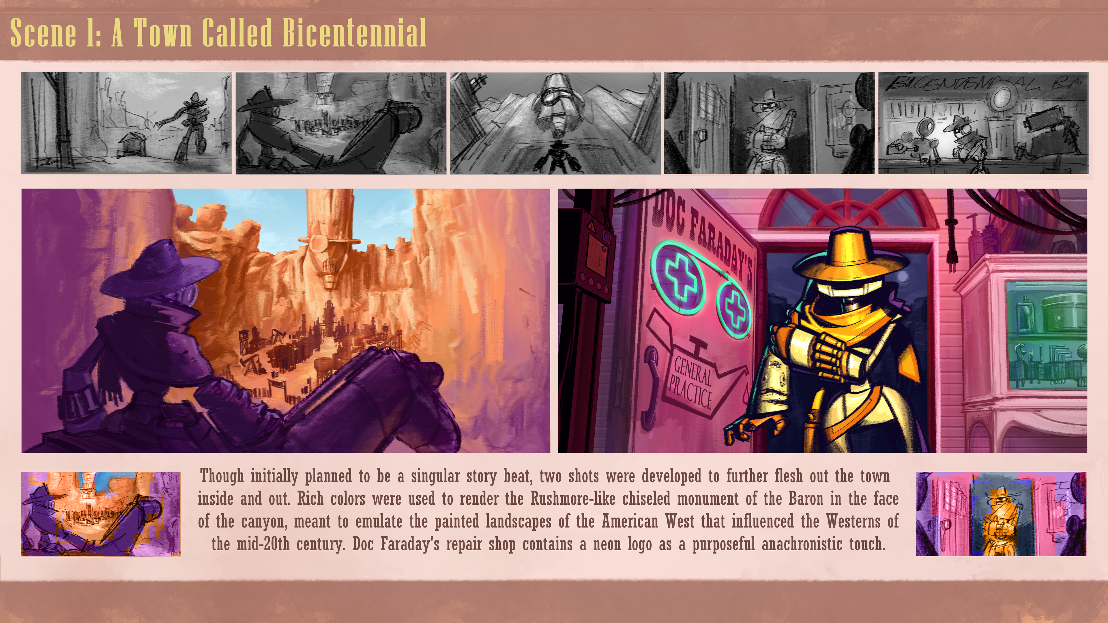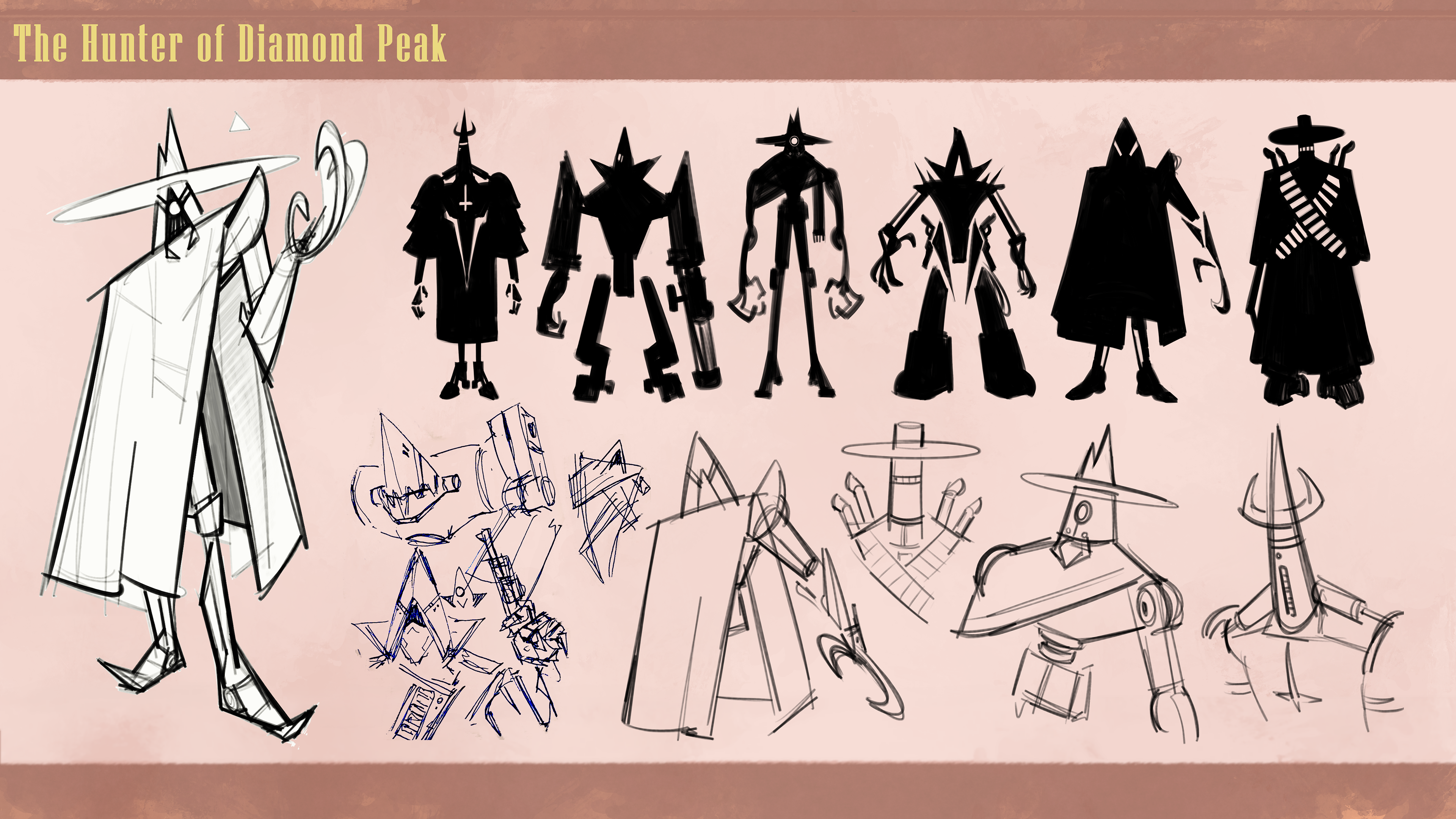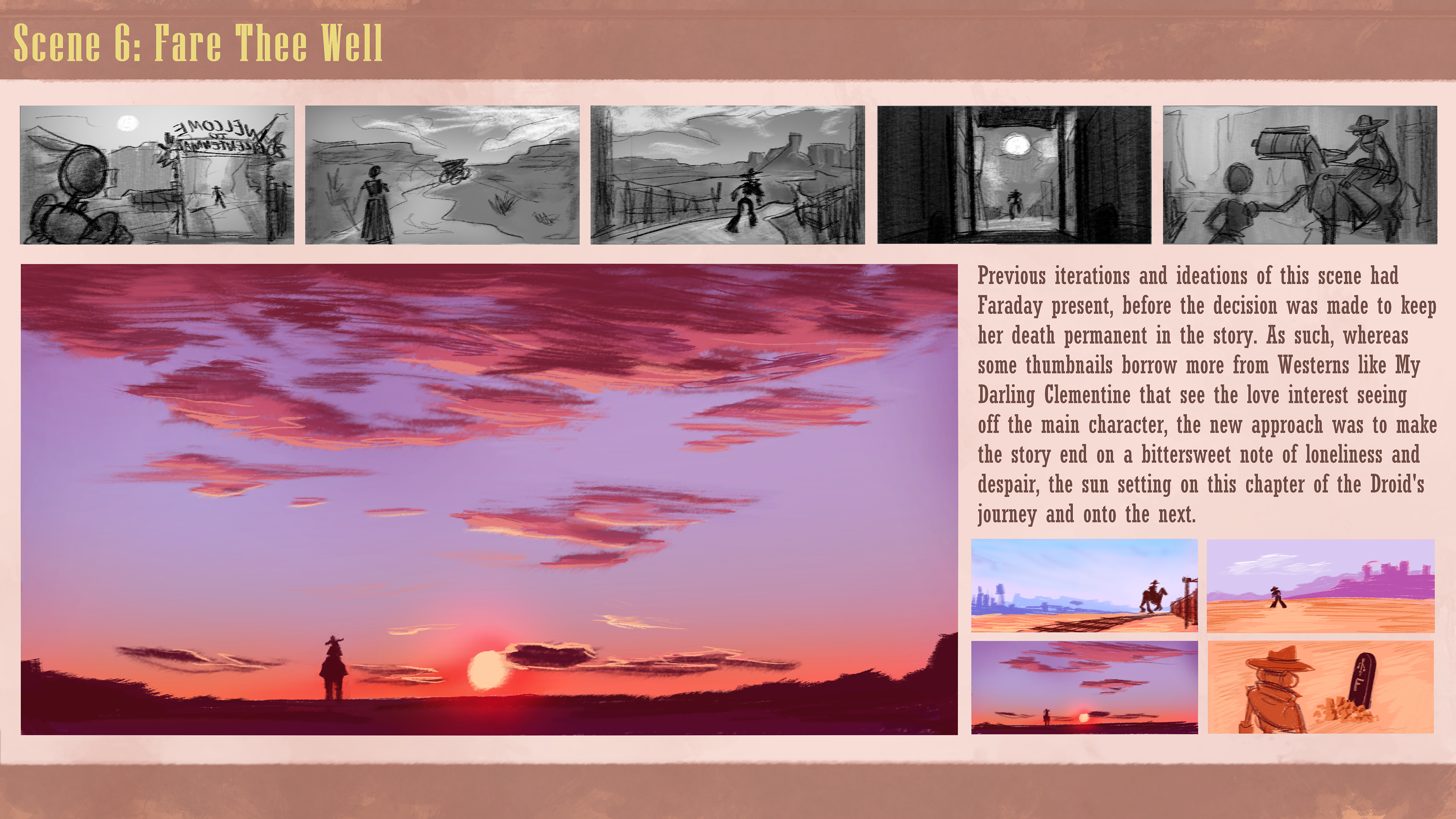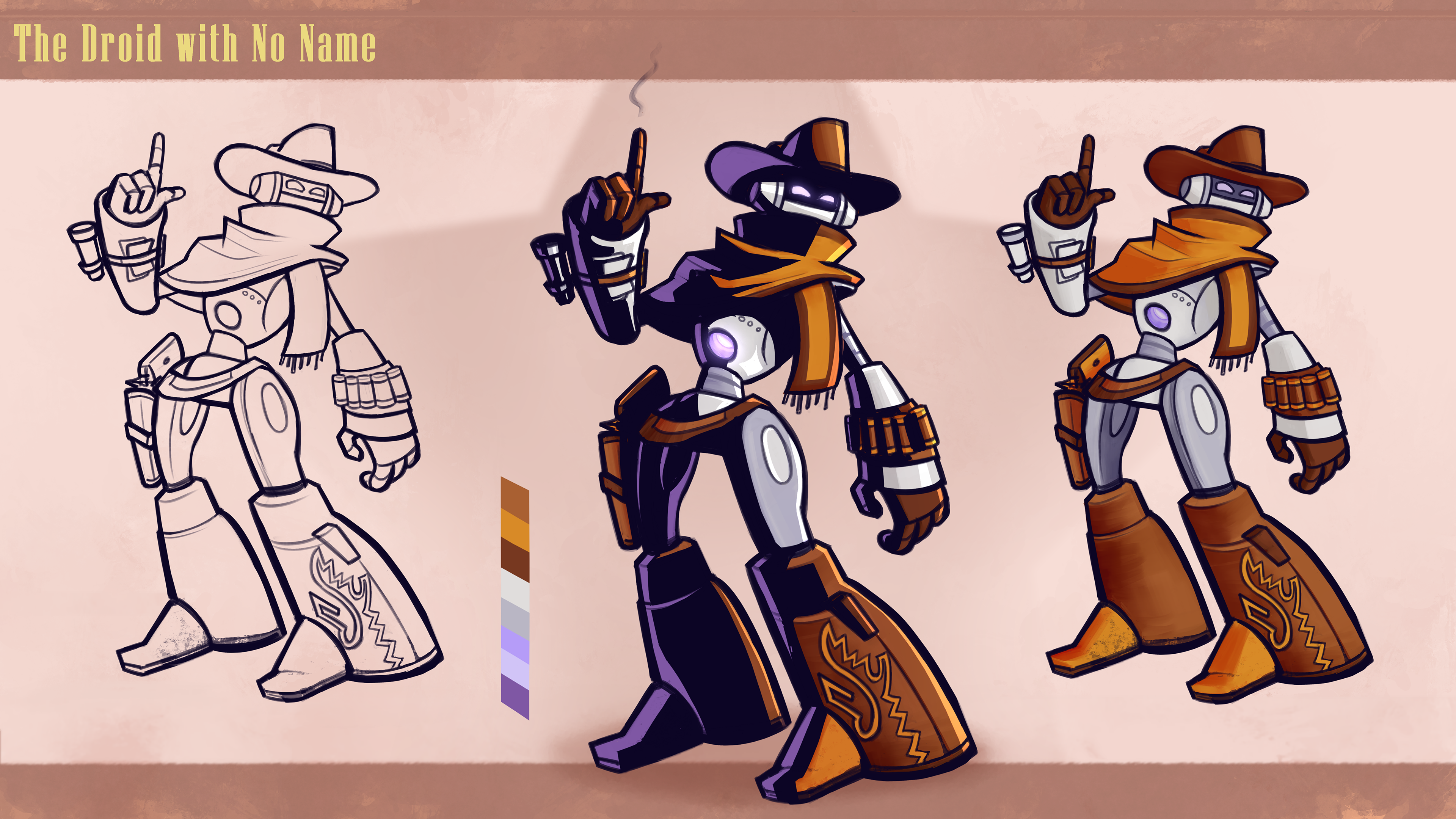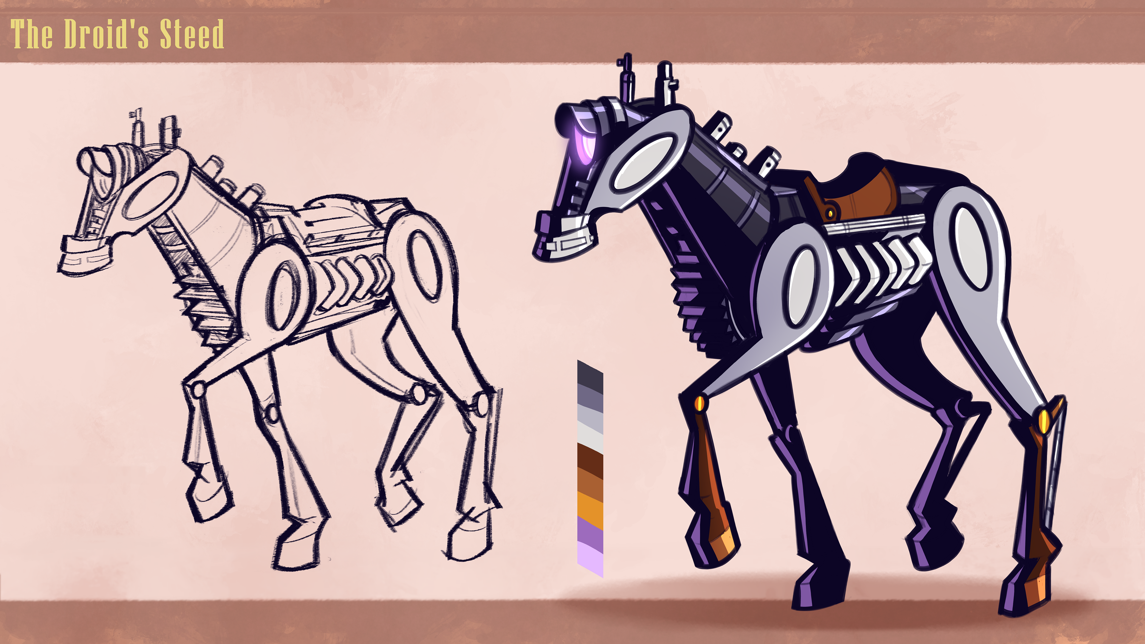 Additional ideations for the Frontiersmaton and Doc Faraday, as well as development of the Droid's steed and revolver.
