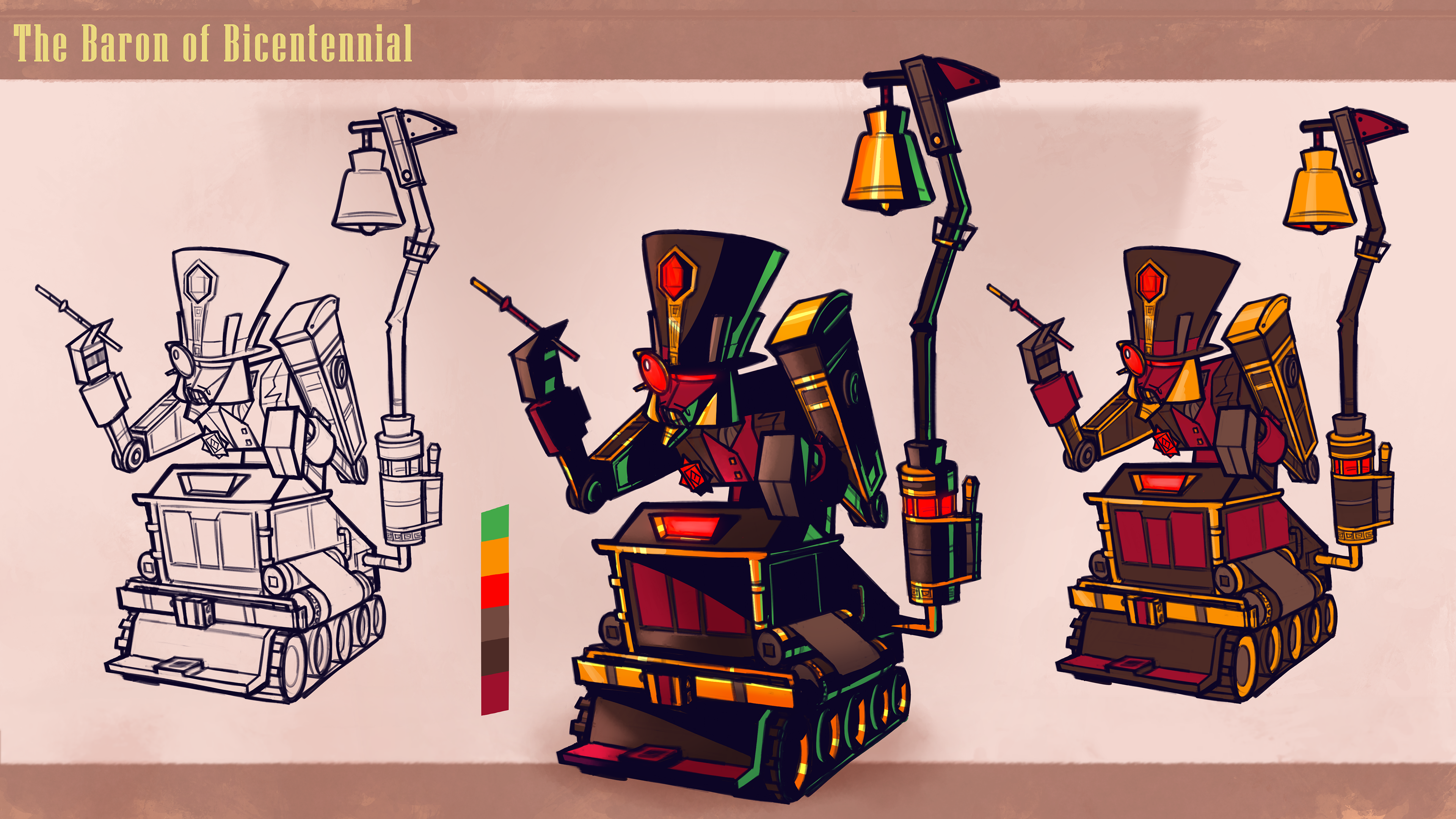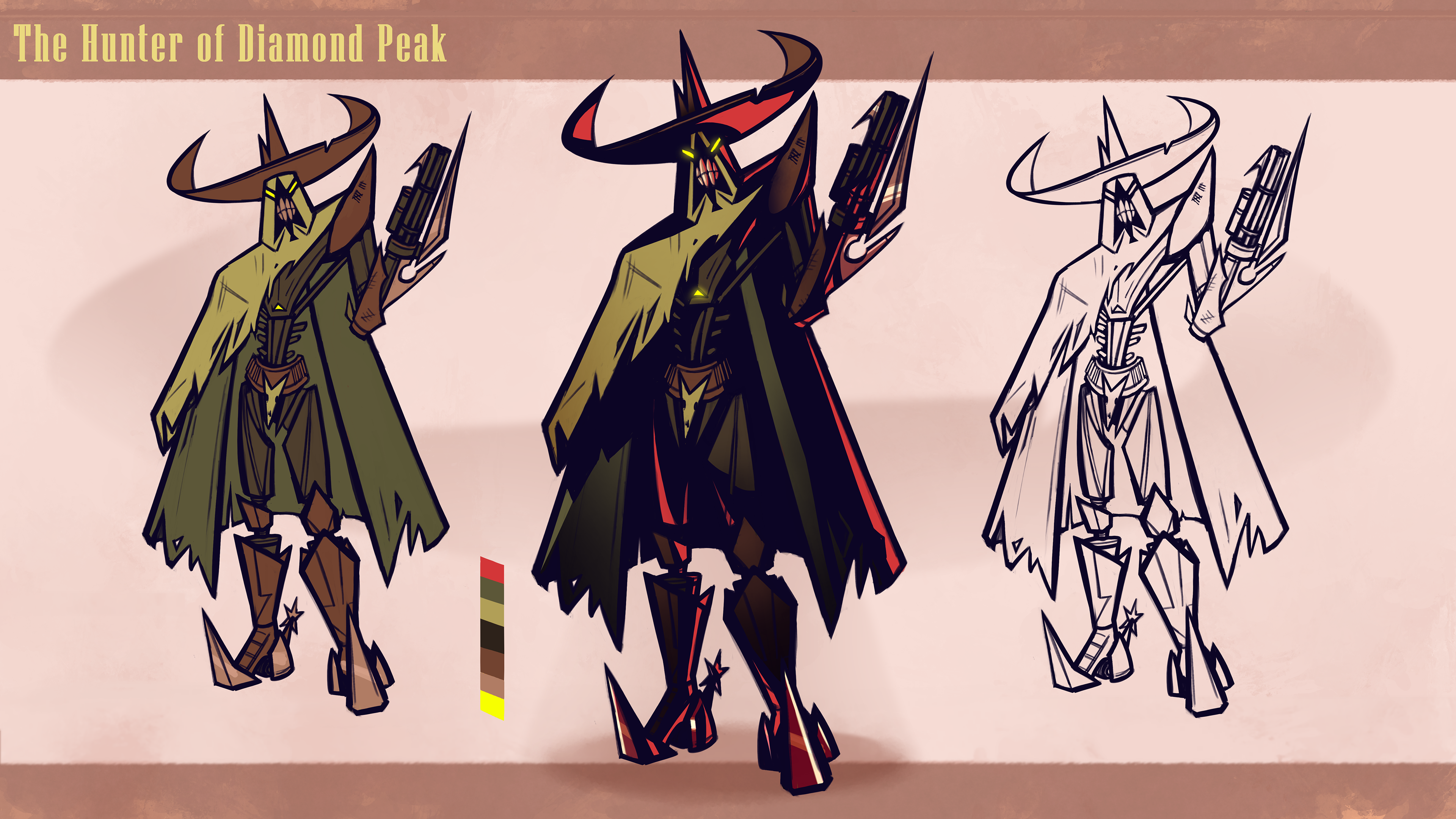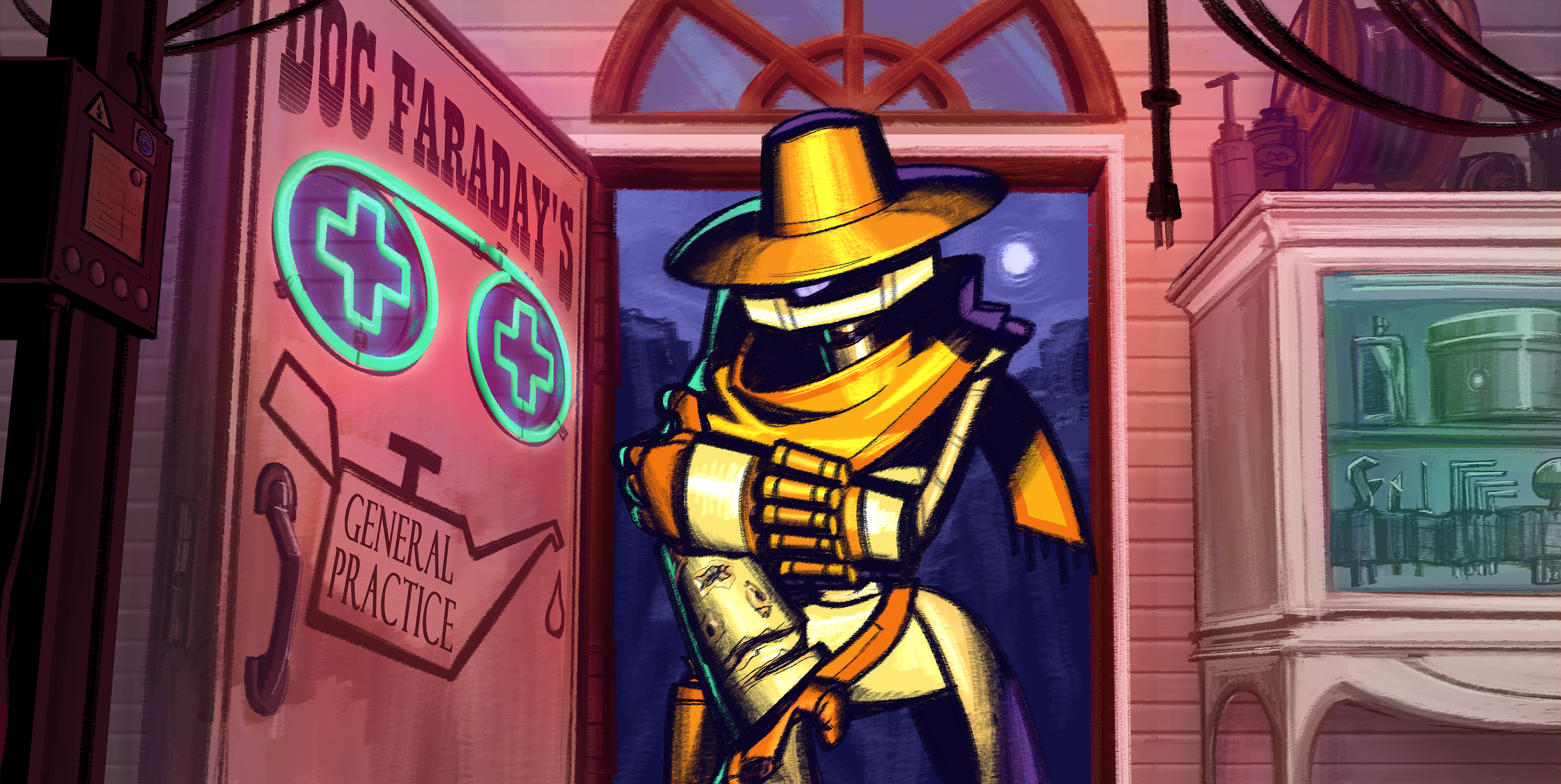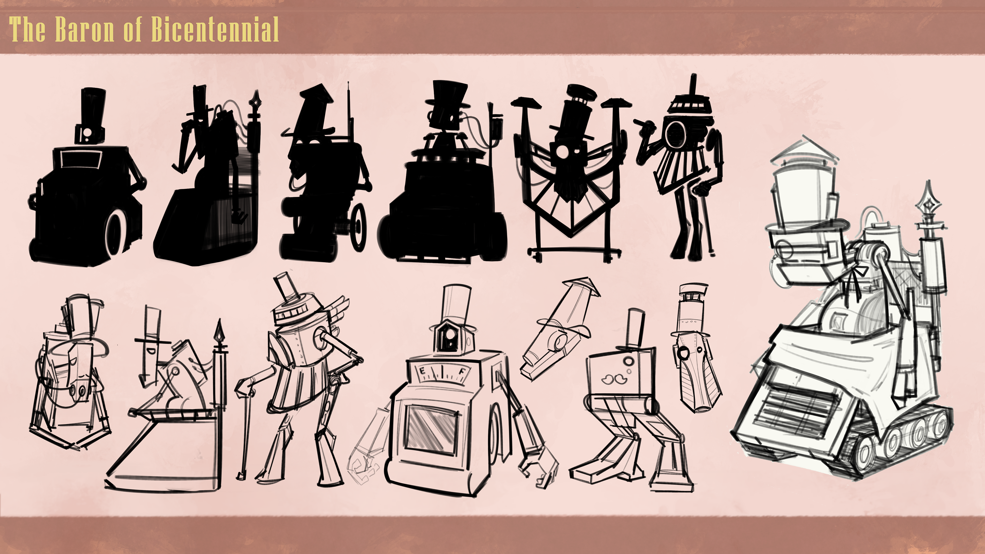 Additional ideations for the Frontiersmaton and Doc Faraday, as well as development of the Droid's steed and revolver.